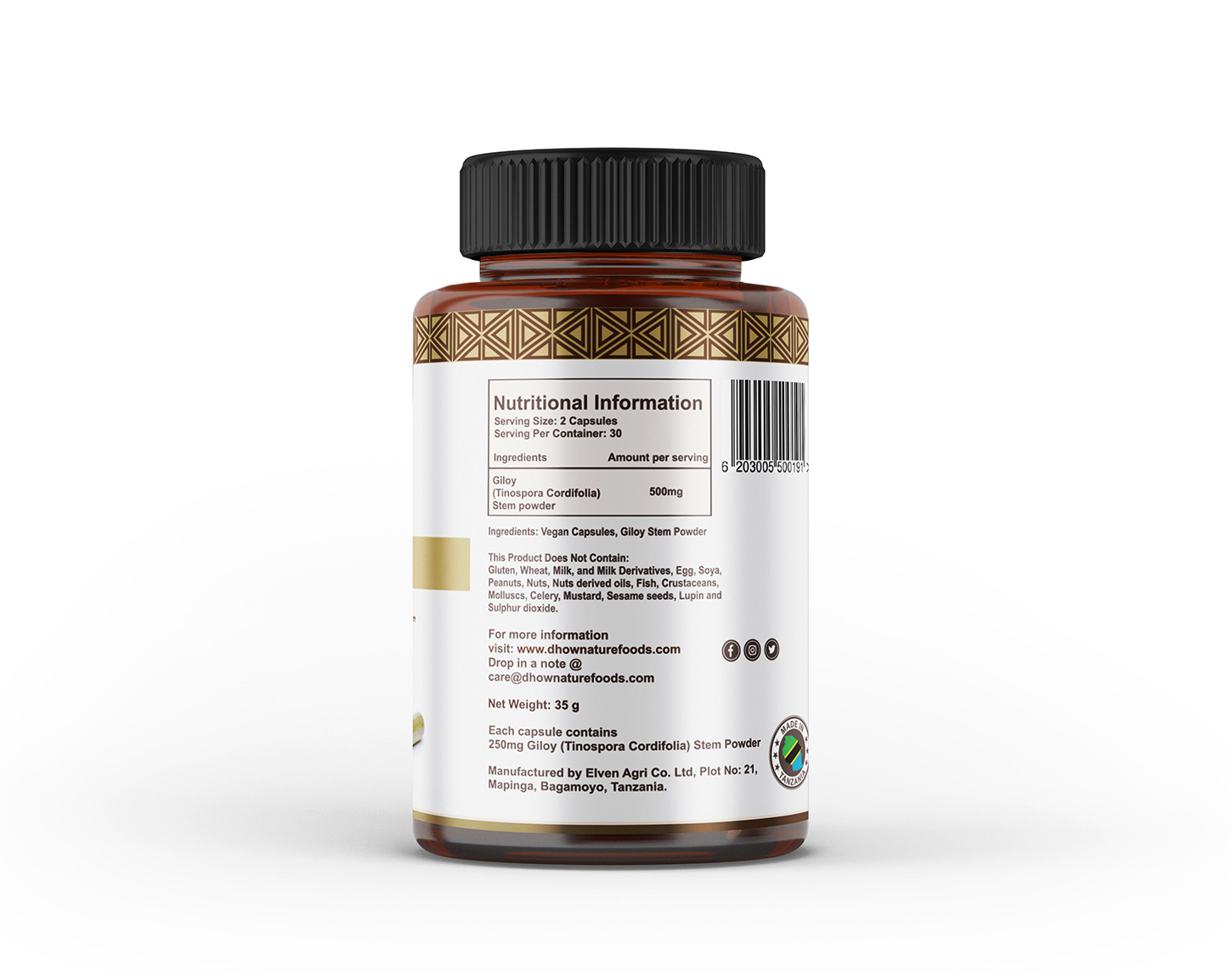 Používajte naše organické Giloy kapsuly ako súčasť zdravého životného štýlu na zlepšenie zdravia. Nie je náhradou pestrej stravy. Tieto kapsuly nie sú určené na liečbu, liečenie alebo prevenciu akejkoľvek choroby. Pri konkrétnych zdravotných problémoch by ste sa mali poradiť so svojím odborníkom v oblasti zdravotnej starostlivosti.